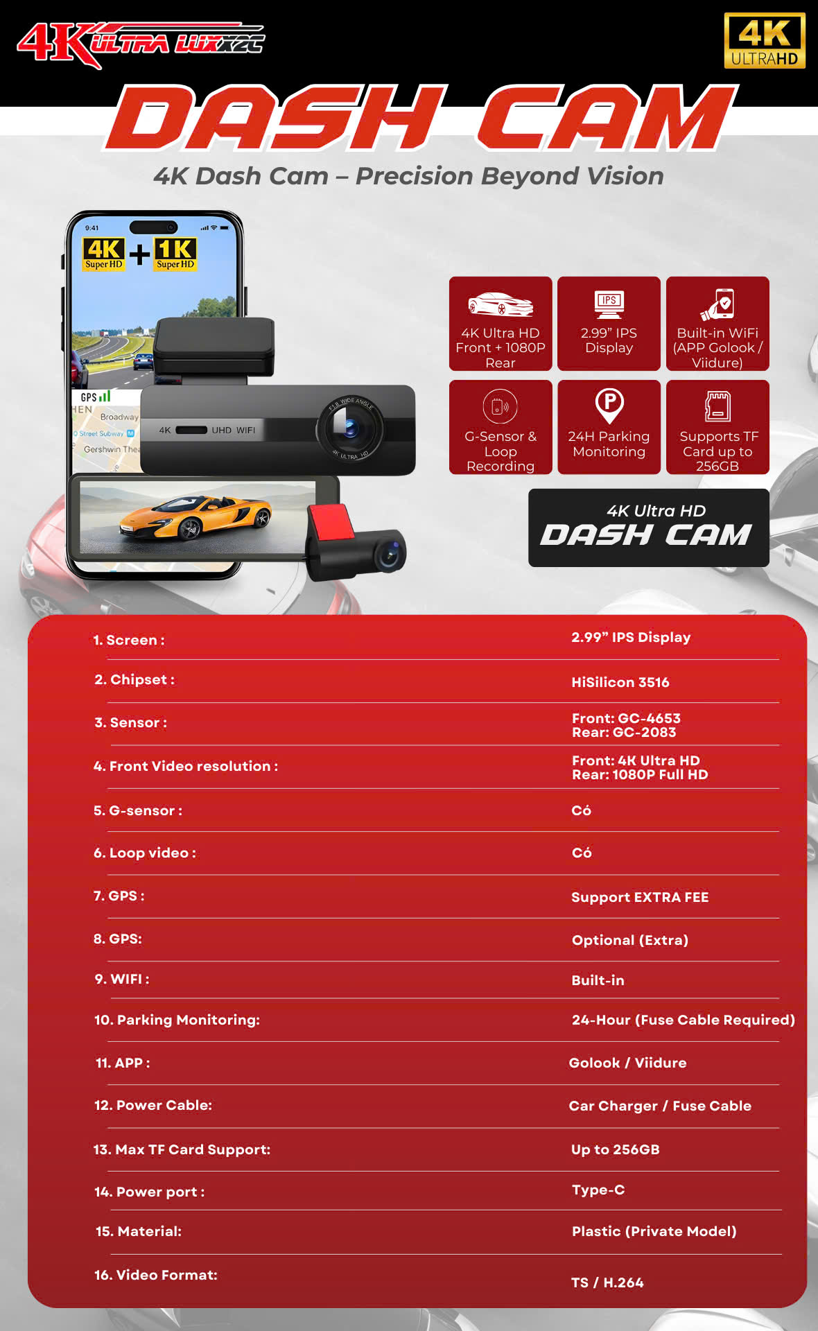 CAMERA HÀNH TRÌNH DASH CAM 4K ULTRA