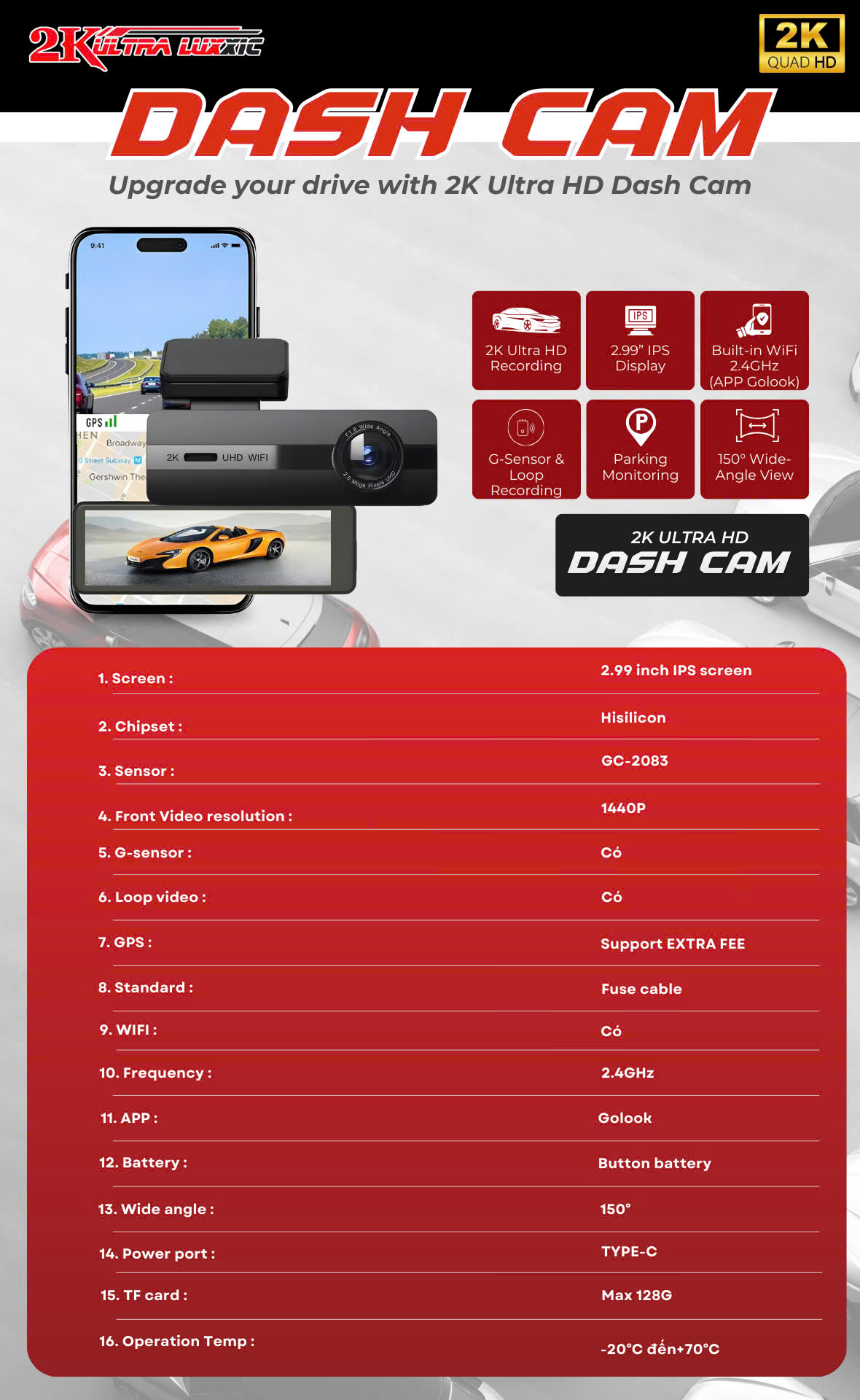 CAMERA HÀNH TRÌNH DASH CAM 2K LUX X1C